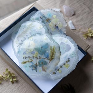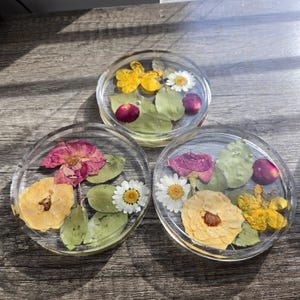 The Resin Flower Coasters preserve real floral beauty in crystal-clear resin, blending functionality with artistry — perfect for adding a graceful touch to your coffee table or workspace.