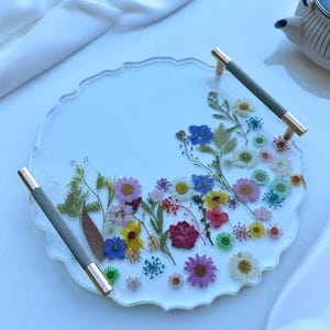 Agate Resin Tray with Gold Handles & Optional Coasters – 13″ Flower Tray